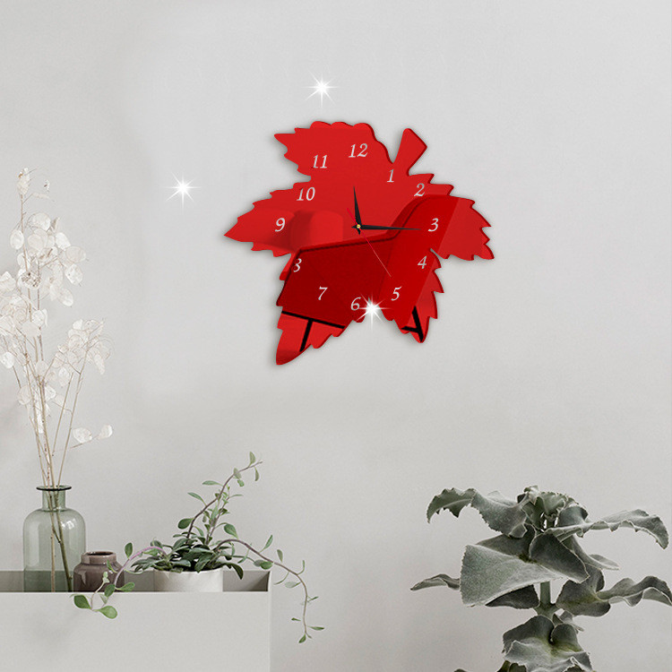 Horloge murale créative en acrylique, feuille d'érable, décoration pastorale, horloge silencieuse pour chambre à coucher, DIY bricolage