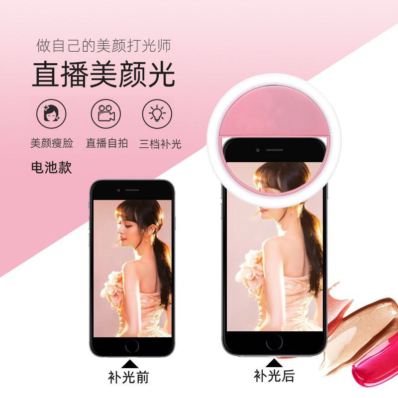 Selfie ringlight mini pour téléphone portable rond diffusion en direct embellissement anneau lumineux type de batterie selfie lumière de remplissage