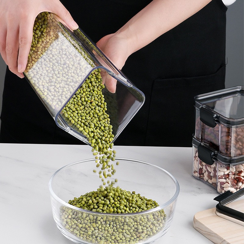 Set de 5pcs - Boîte de rangement en plastique scellée transparente carrée épaissie - boîte de stockage de fruits secs et de céréales - boîte de nourriture en plastique réservoir de stockage de thé et de céréales diverses