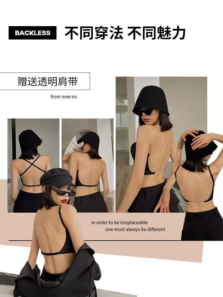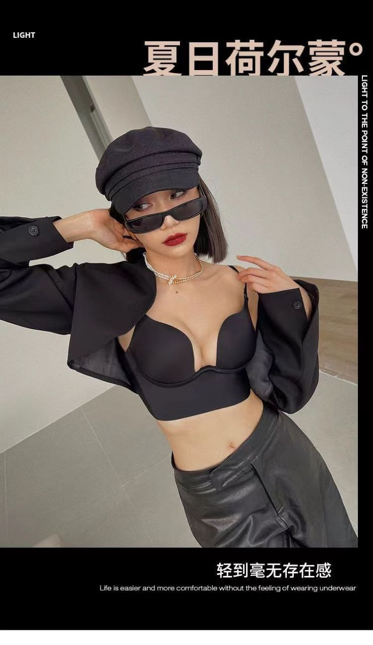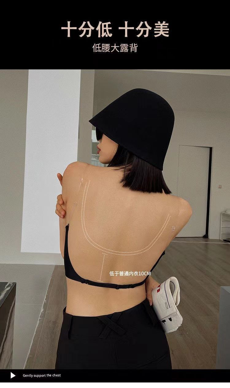 Grand soutien-gorge dos nu en forme de U pour femme en été avec petits seins froncés soutien-gorge sans couture avec seins latéraux soutien-gorge sexy en V profond
