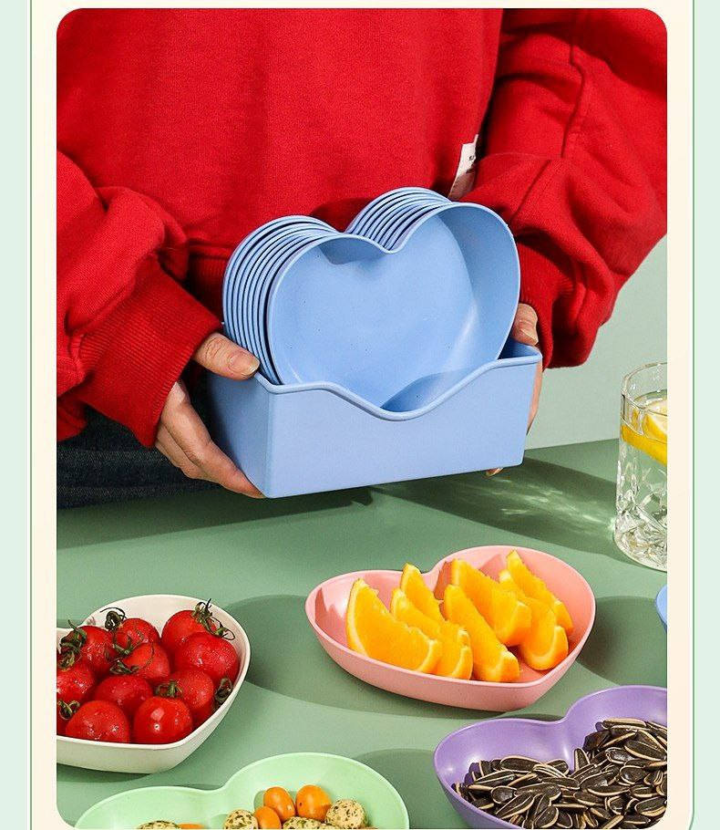 Assiette à brocher en os de ménage en forme de cœur, assiette en os de table à manger, a collation ménagère créative, assiette de fruits, de graines de melon, à éplucher
