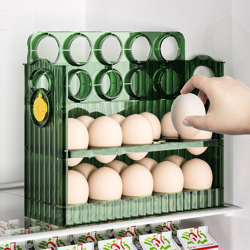 Boîte de rangement des œufs côté réfrigérateur réversible grande capacité divisée cuisine à trois couches bac à œufs transparent et aux œufs de canard 30trous
