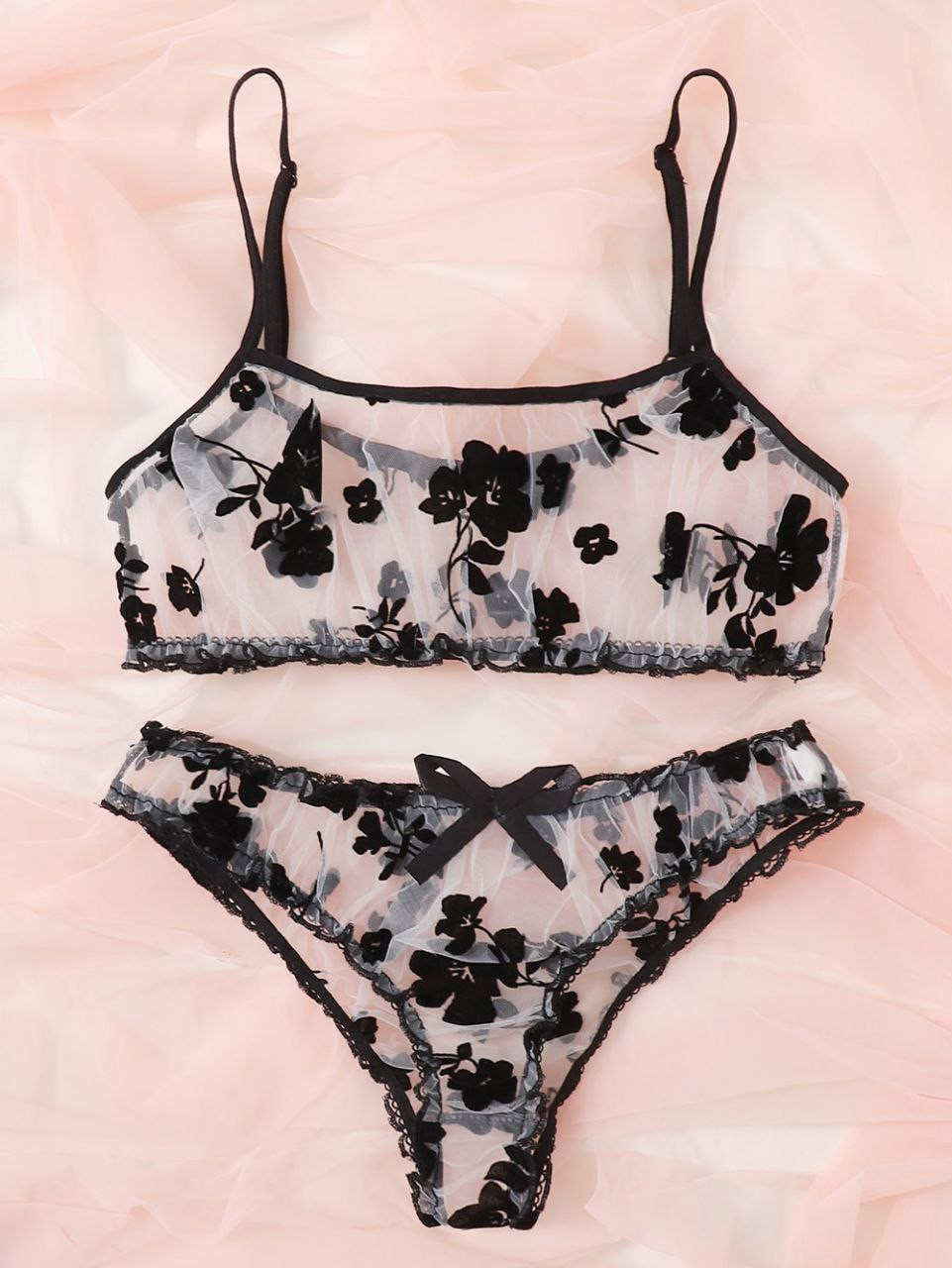 Lingerie sexy Été nouvel ensemble de lingerie sexy transparent floqué maille multicolore tentante pour les femmes