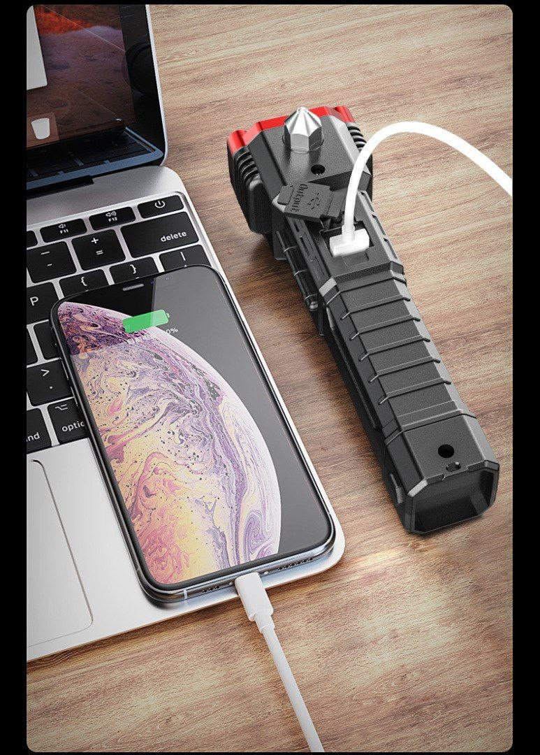 Marteau de sécurité pour voiture Lampe de travail multifonctionnelle avec banque d'alimentation Lampe de poche d'auto-défense pour la lutte contre les incendies d'urgence