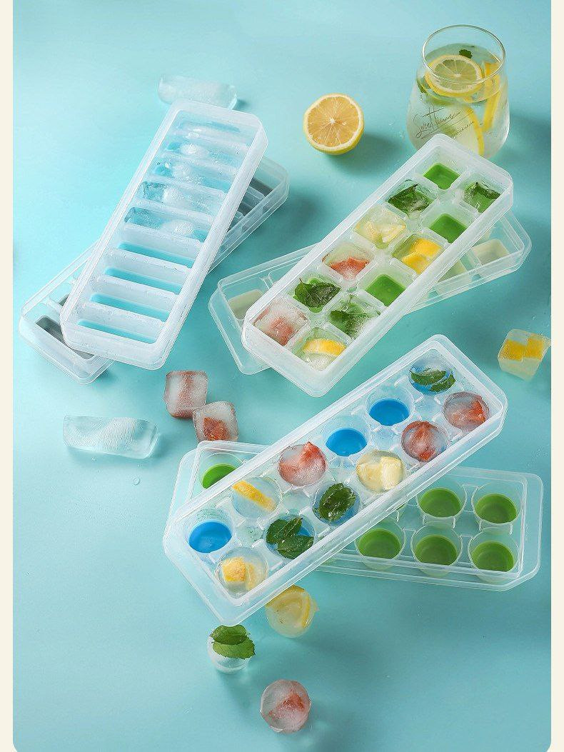 Bacs à glaçons en plastique pour réfrigérateur domestique prêts à l'emploi avec plusieurs formes pour les artefacts de fabrication de glace d'été, faciles à libérer et à empêcher le transfert d'odeurs