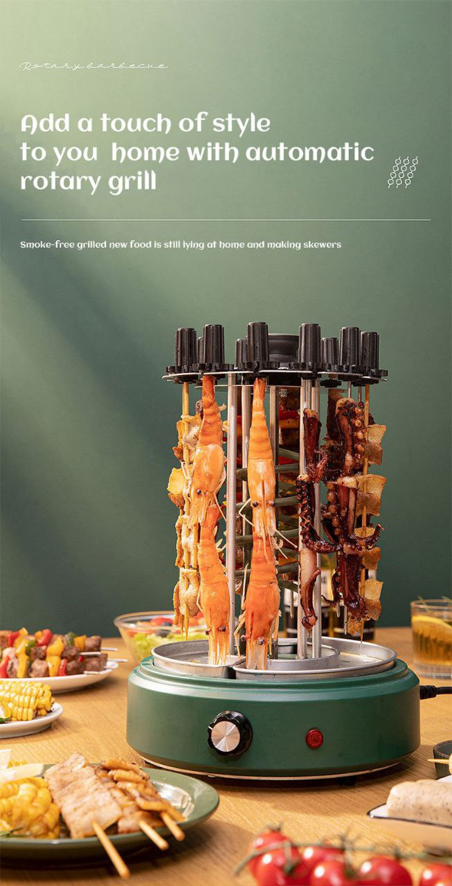 Gril électrique a 12 brochettes gril électrique domestique petite machine de barbecue à fumée rotative entièrement automatique sans huile