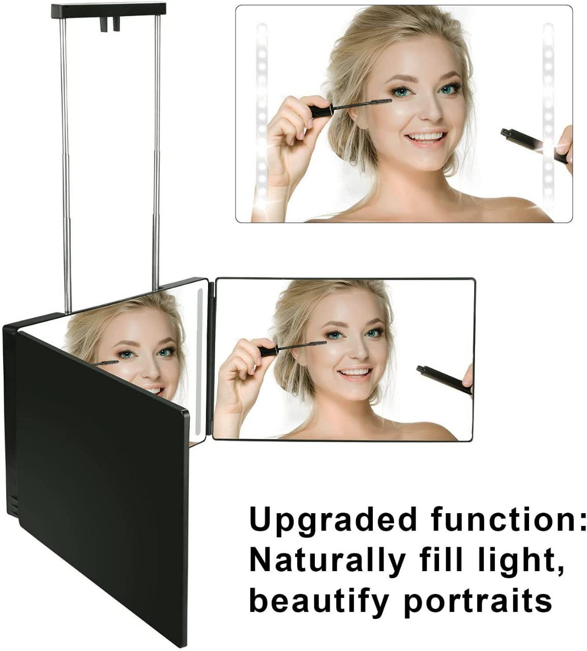 Miroir à trois voies suspendu, coupe de cheveux automatique, rétroviseur pliant, miroir de coupe de cheveux arrière rétractable suspendu pour salon de coiffure