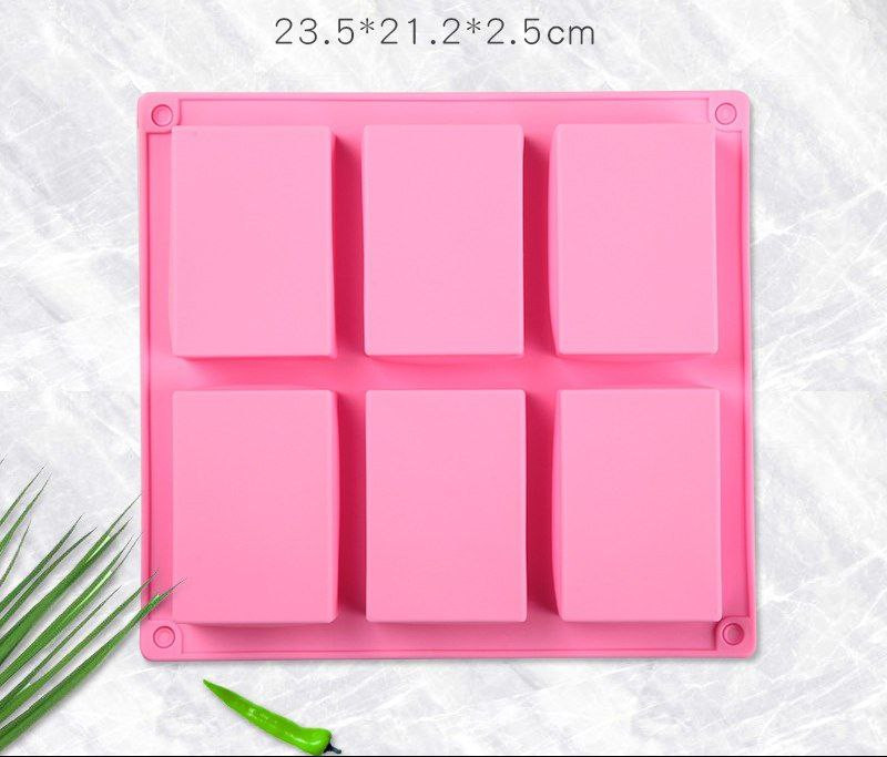 6 carres de moule à gâteau et savon en silicone rectangulaire, moule à savon fait main