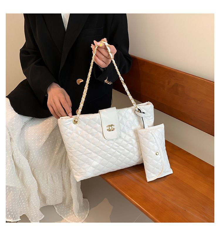 Nouveau sac à main transfrontalier à chaîne en losange tendance en cuir souple pour femme épaule grande capacité sac fourre-tout à bandoulière