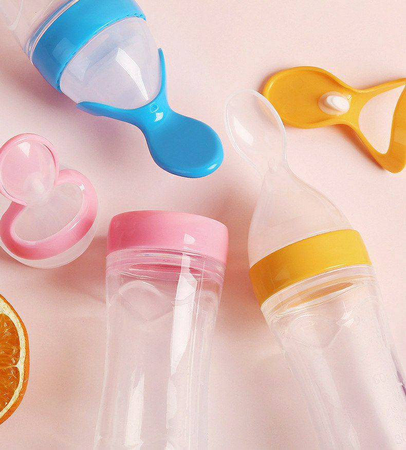 Bouteille d'alimentation en silicone a presser, cuillères a biberon extrudé en silicone alimentaire supplémentaire silicone cuillère douce