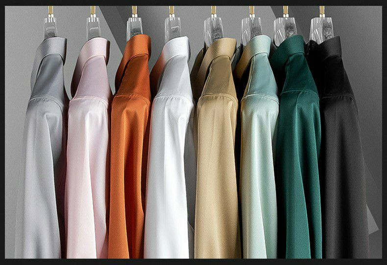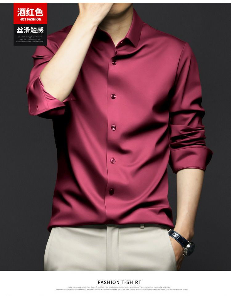 Chemises à manches longues pour hommes, anti-rides, sans repassage, vêtements de cérémonie professionnels, chemises d'affaires haut de gamme en soie glacée, chemises en pouces