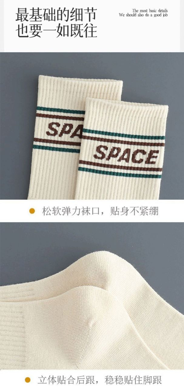 Chaussettes décontractées unisexes à imprimé lettres de style rétro.