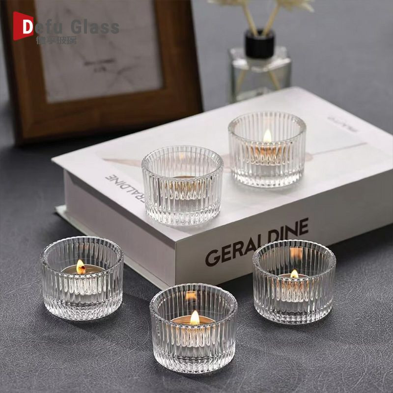 Photophores en verre côtelé de la marque NBEADS, parfaits pour la décoration intérieure.