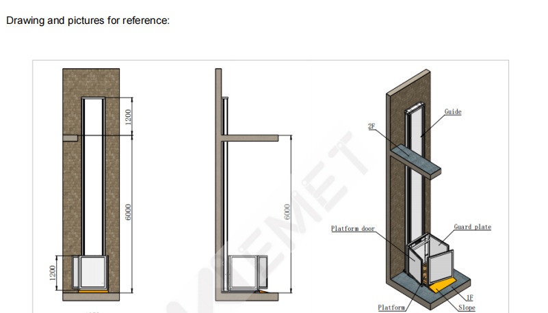 Le mini ascenseur GH0.25-6.85 est spécialement conçu pour offrir une solution pratique et accessible aux personnes à mobilité réduite. Avec une plateforme de 1000 x 1000 mm, il permet un déplacement sécurisé et confortable avec une hauteur de levée de 6000 mm. Idéal pour les espaces résidentiels ou commerciaux, cet ascenseur dispose de deux portes sur la plateforme et d'une rampe fixe pour faciliter l'accès.