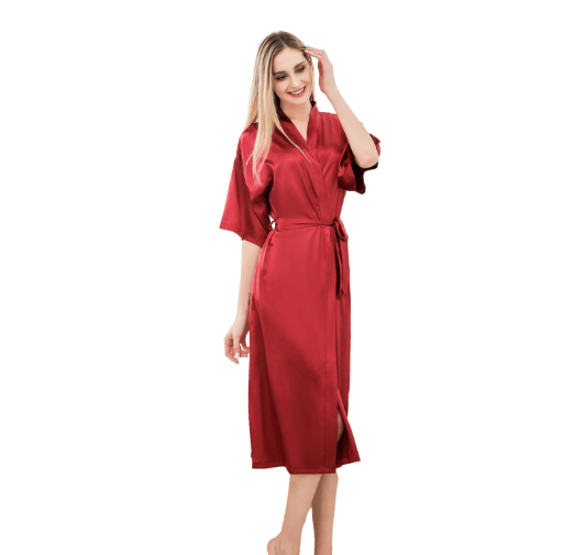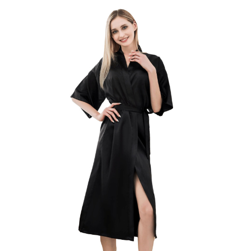 Peignoir longue durée en vente à l'unité, couleur unie, micro stretch, peignoir pour dames, fin, sexy, en satin.