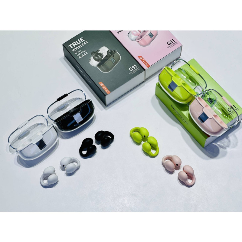 Ecouteurs Bluetooth G91 sans fil OWS avec boîtier transparent, fonction anti-bruit, affichage numérique, conçu pour le sport et la musique, idéal pour les environnements de sport et les appels téléphoniques.