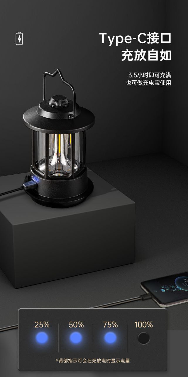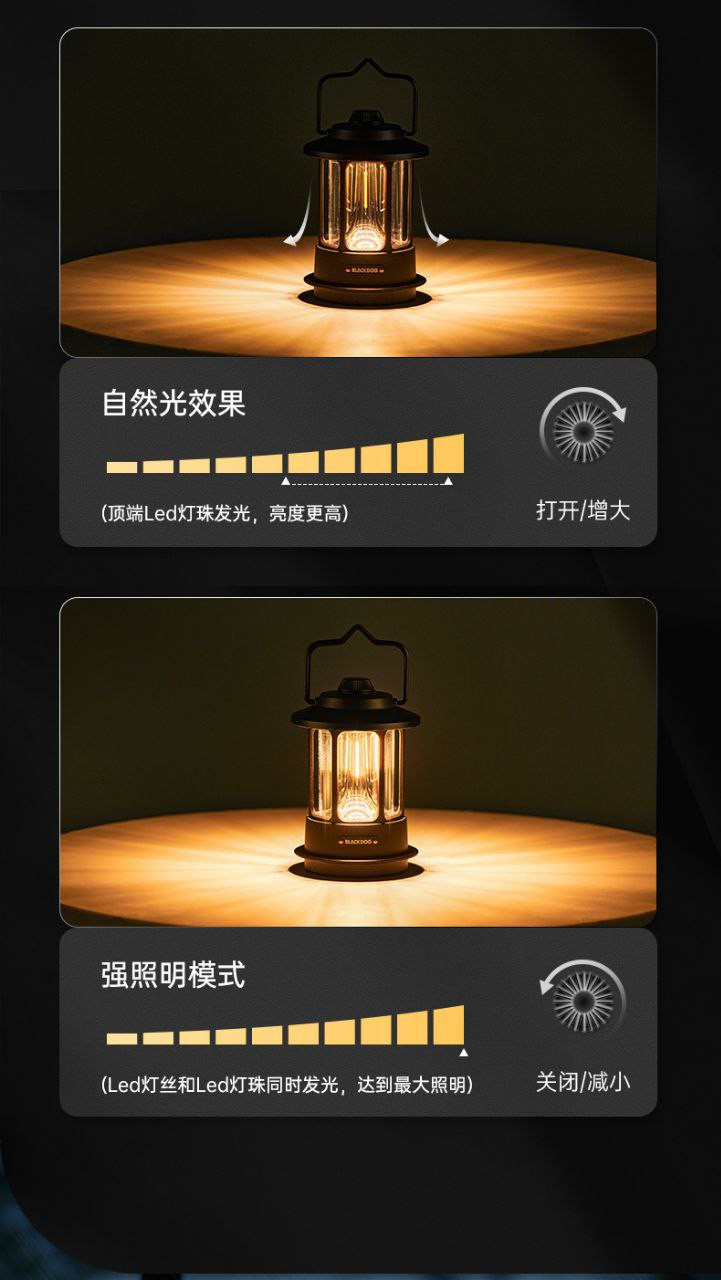 Blackdog lampe d'ambiance de camping en plein air lampe de camping portable lampe suspendue lampe de tente rétro rechargeable