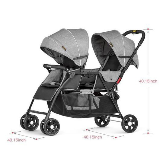 • Notre poussette double est dotée de roues absorbant les chocs de haute qualité qui améliorent l'expérience de conduite de votre bébé. Les roues avant sont verrouillables et équipées de suspensions, permettant une conduite et des virages en douceur sur les routes très fréquentées.