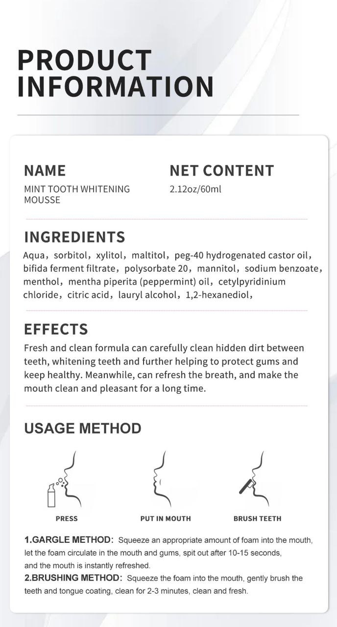 Mousse de nettoyage des dents RtopR 60 ml RtopR044 modèle transfrontalier de blanchiment des dents