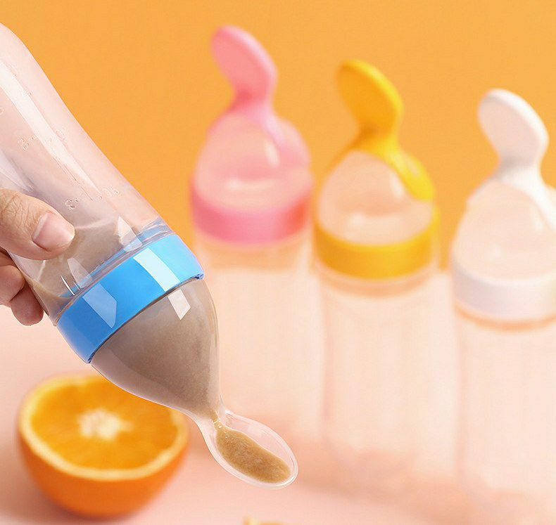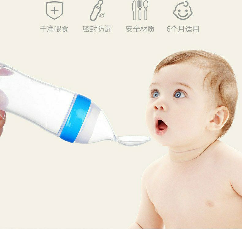 Bouteille d'alimentation en silicone a presser, cuillères a biberon extrudé en silicone alimentaire supplémentaire silicone cuillère douce