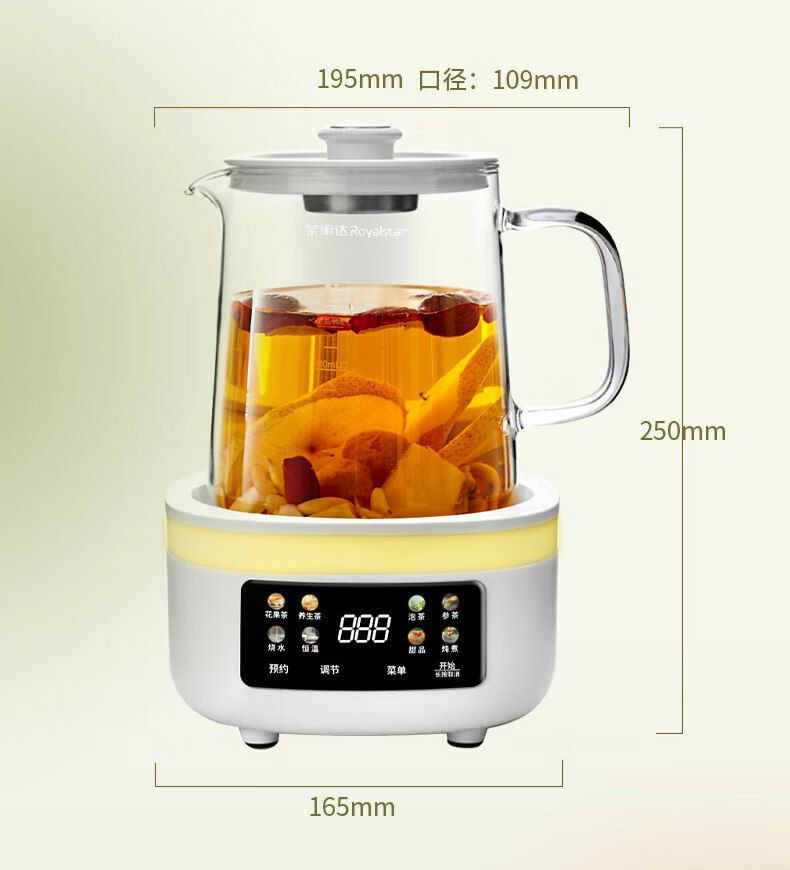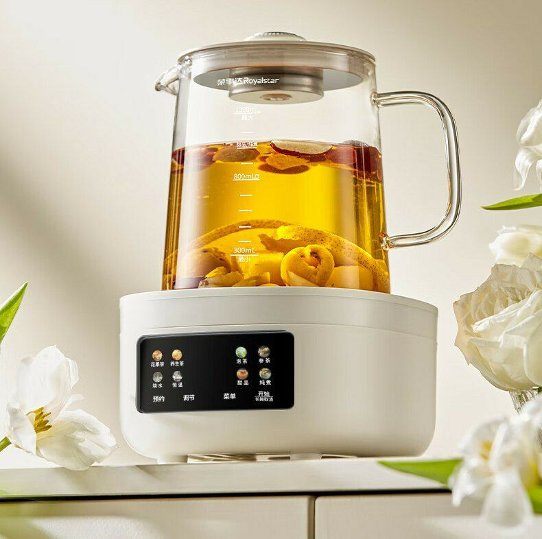 Une bouilloire de santé en verre de la marque Royalstar, modèle YSH1280 (L). Marque et Modèle : Royalstar YSH1280 (L).