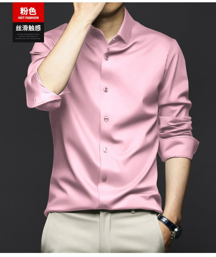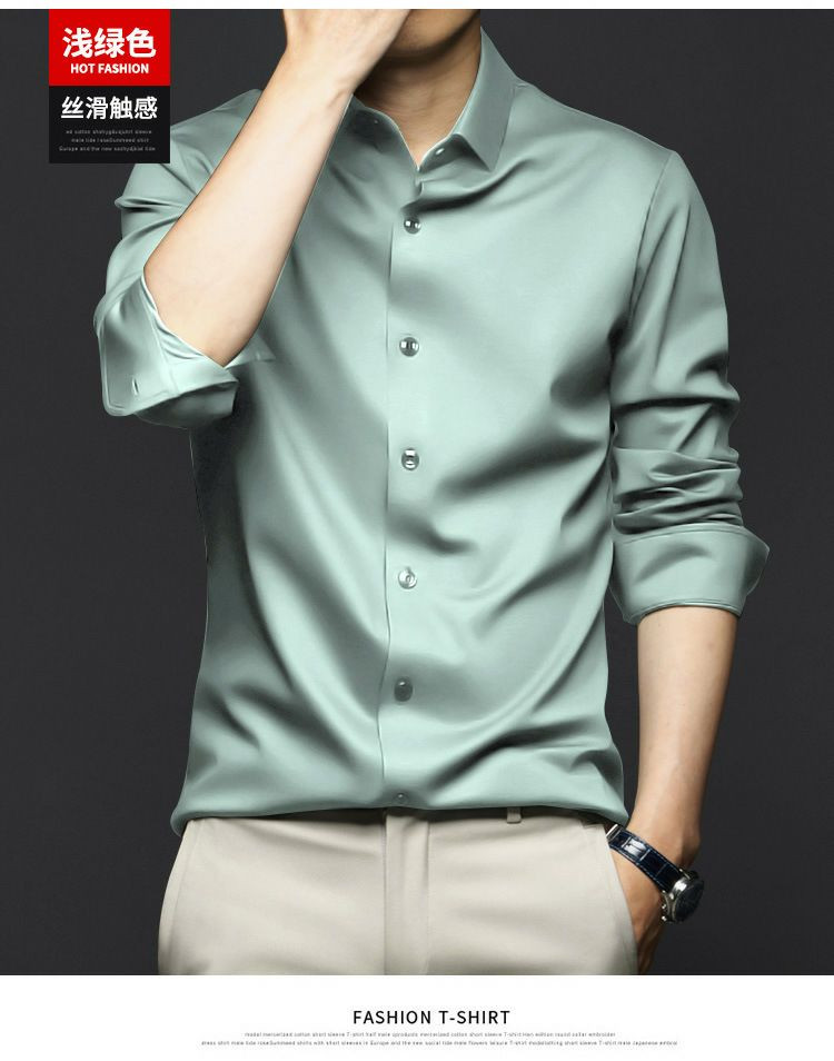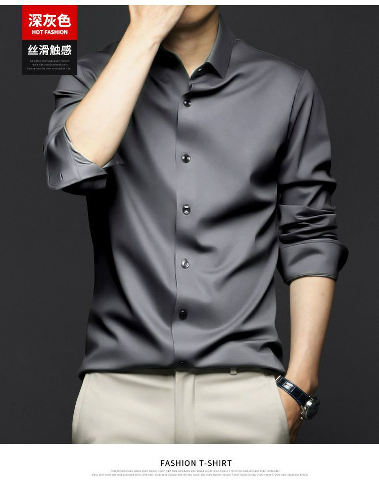 Chemises à manches longues pour hommes, anti-rides, sans repassage, vêtements de cérémonie professionnels, chemises d'affaires haut de gamme en soie glacée, chemises en pouces