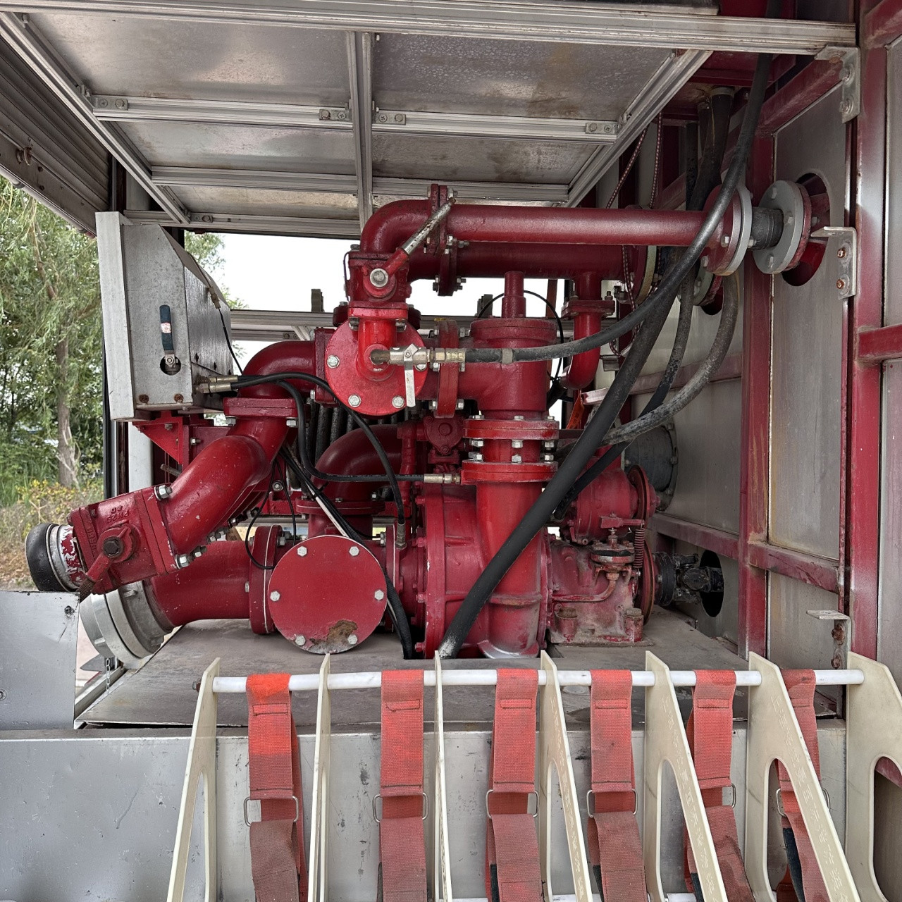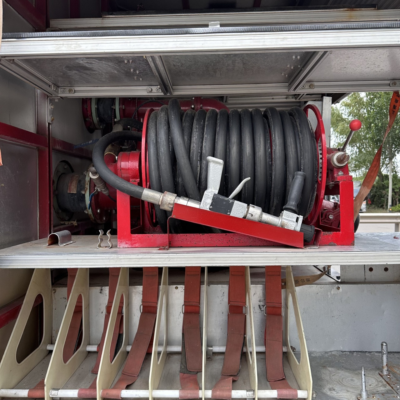 Il dispose également de deux sorties basse pression de 65 mm et de quatre sorties de 80 mm. Capable de déployer simultanément 4 tuyaux d'arrosage, avec 4 entrées d'eau de 65 mm, profondeur d'amorçage automatique ≥ 7 mètres, coffret multifonctionnel de grande capacité, pouvant être équipé de divers équipements d'extinction d'incendie et de sauvetage, utilisable pour l'alimentation en eau en zones isolées et le drainage des eaux pluviales, en parfait état neuf, convient à une utilisation dans diverses usines chimiques, centres commerciaux, sites touristiques, villages, écoles et équipes de secours, et fonctionne comme au premier jour.