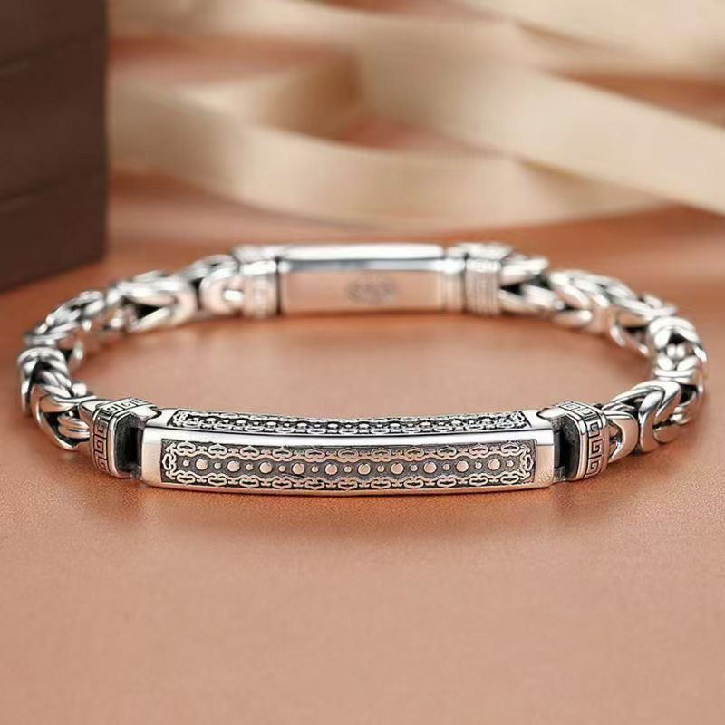 Bracelet pour hommes en argent sterling S925 avec un design de chaîne de maillons carrés et un fermoir décoratif