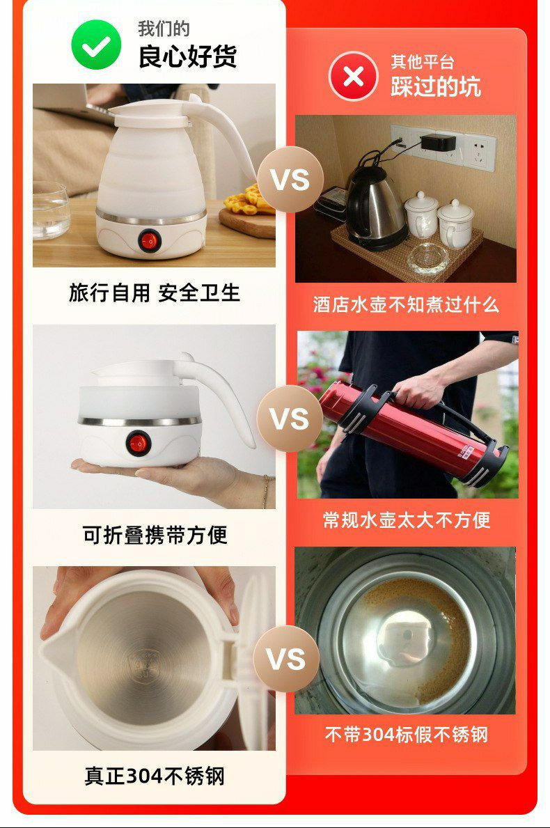 Bouilloire électrique pliable, idéale pour les voyages ou le bureau.