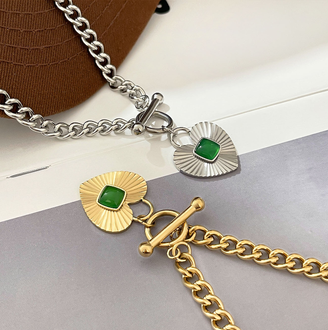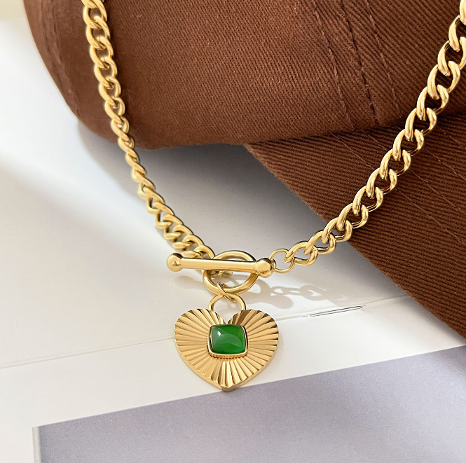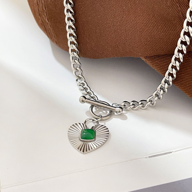 Boucle OT européenne et américaine Love collier de malachite naturelle Chaîne cubaine Chaîne de clavicule Petit style minimaliste ins net style rouge