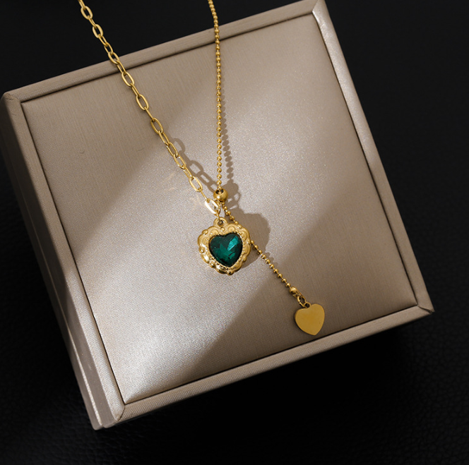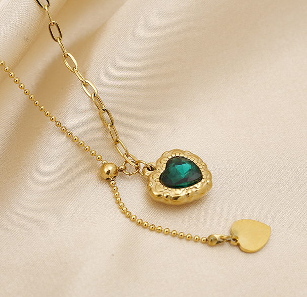 Français titane acier atmosphérique émeraude amour non-décoloration collier femmes lumière luxe tempérament mode exquis clavicule chaîne niche