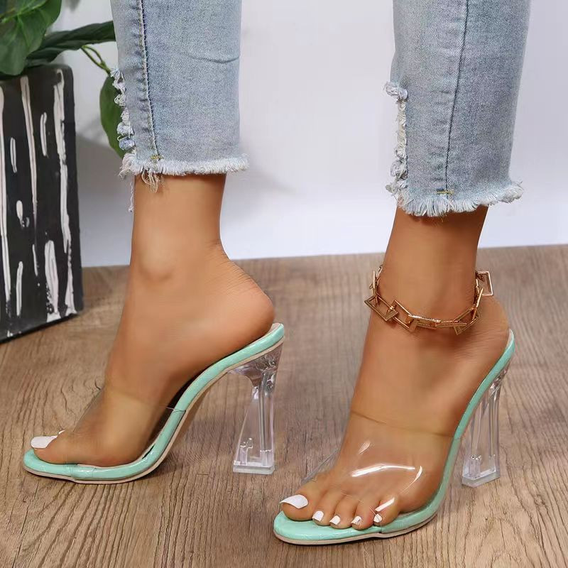sandales à talons hauts pour femmes; Grande et petite taille; mode d'été simple; revêtement supérieur et extérieur transparent; chaussures décontractées; style sexy