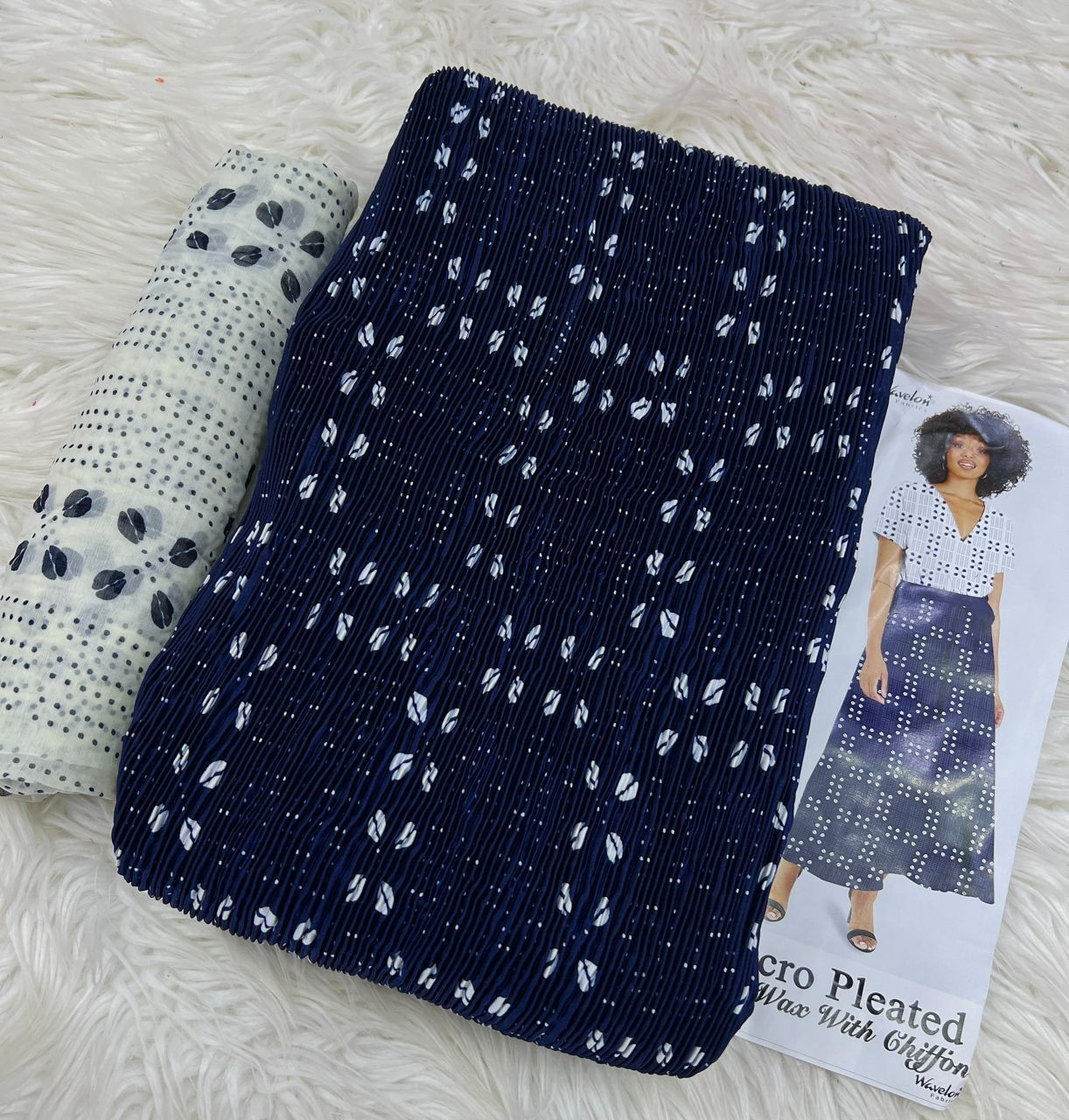 Tissu soie Wavelon Plissé 4yards de tissu+2 yards de foulard=6yards